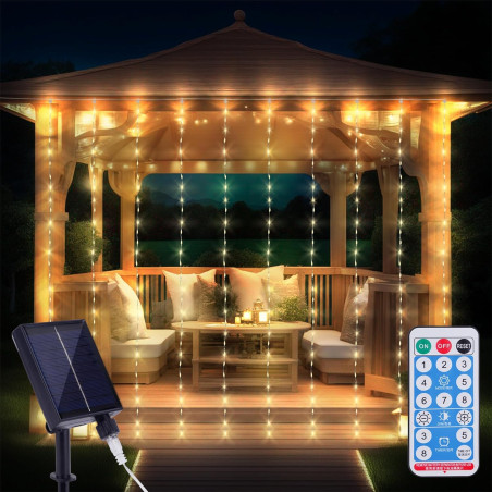 300LED Solar Curtain Lights Outdoor Indoor, IP65 Waterproof Solar String Lights for Patio Decor, Dangling Window Lights, 8 Modes Twinkle Lights for Christmas Home Garden Wall Party - Warm White
